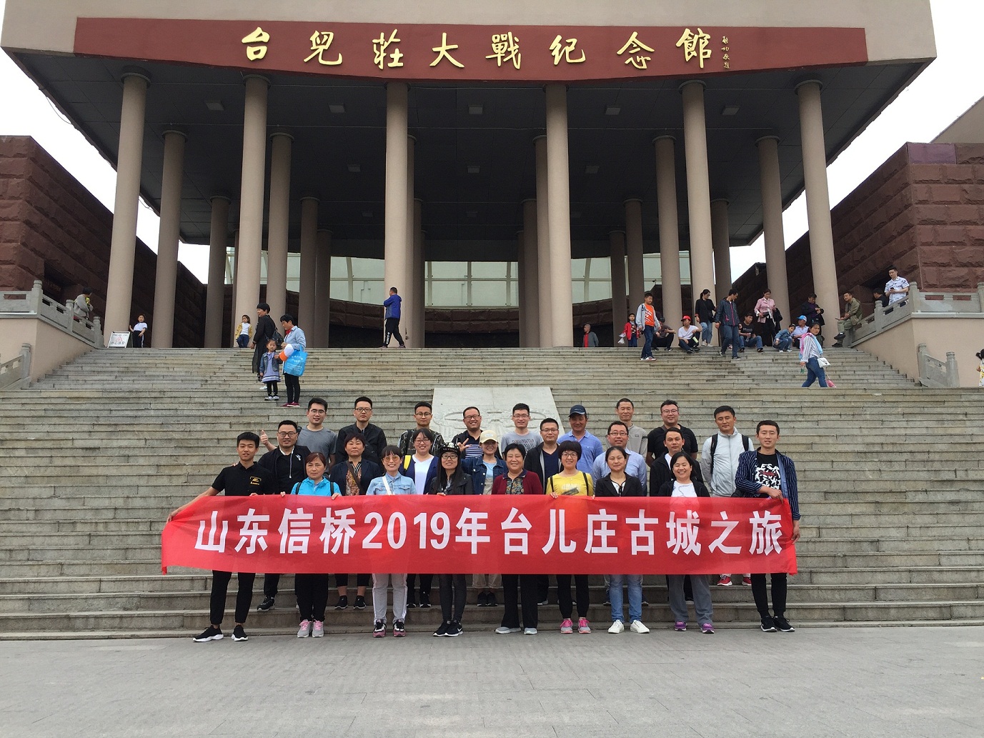 2019.5.11早大家在指定地點集合乘車赴棗莊,抵達(dá)后參觀【臺兒莊大戰(zhàn)紀(jì)念館】,在紀(jì)念館前拍照留念后沿38級臺階拾級而上,依次步入展覽館的3個展廳和全景畫館,600多件珍貴文物史料和集聲、光、塑、形及氣勢恢弘的畫面于一體的巨幅全景畫,再現(xiàn)那一段飽含光與淚的歷史,引人深思。
