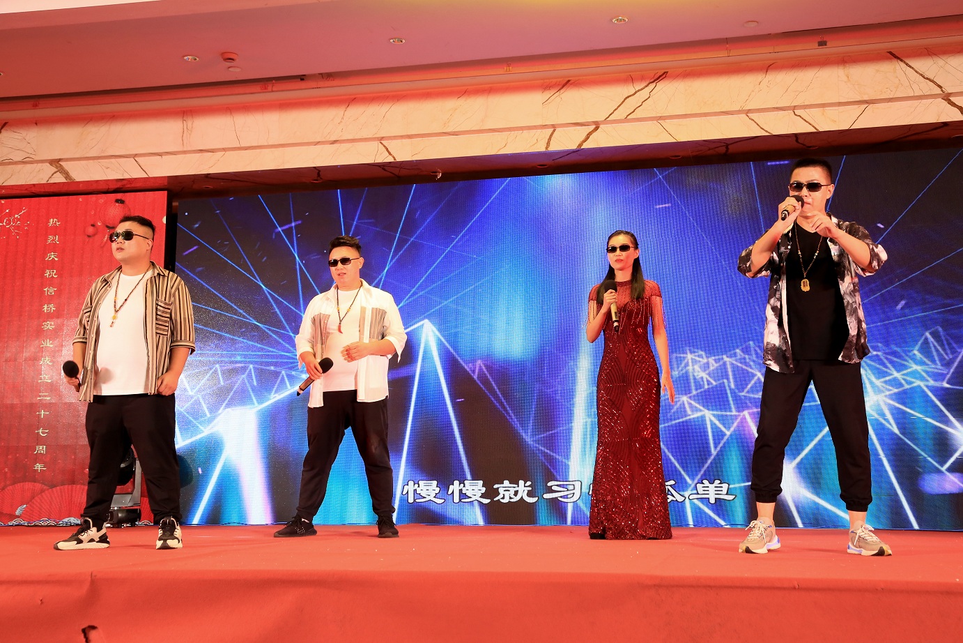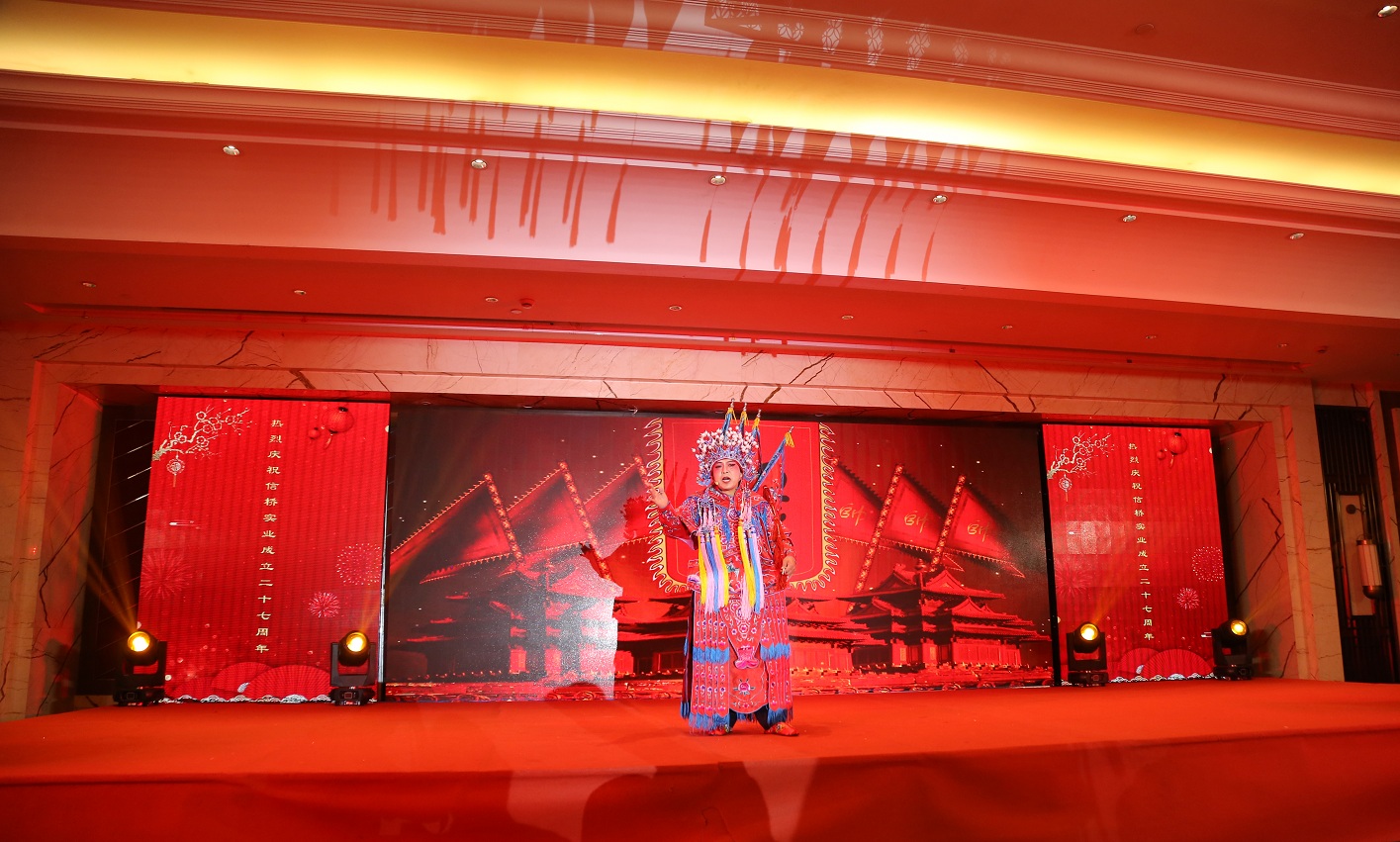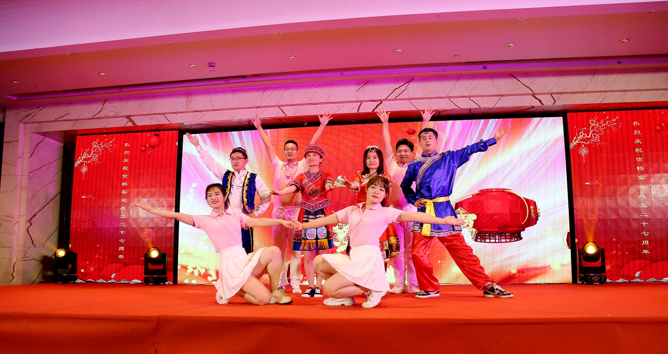 此次慶典晚宴參加人員除了信橋全體員工之外,還有部分老領(lǐng)導(dǎo)和老朋友,大家共同分享了信橋二十七周年的喜悅與精彩。八號(hào)上午,慶典開(kāi)始之前,演員們辛勤排練,燈光師、音響師共同配合,所有人為了晚會(huì)都在努力。下午4點(diǎn)58分,晚會(huì)正式開(kāi)始,全體員工與領(lǐng)導(dǎo)集體合影,信橋隊(duì)伍不斷在擴(kuò)大。今年的晚會(huì)添加新的互動(dòng)方式,采用了直播和紅包雨的新形式,是信橋周年慶典的一次新的嘗試。