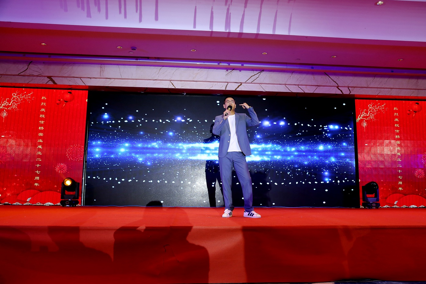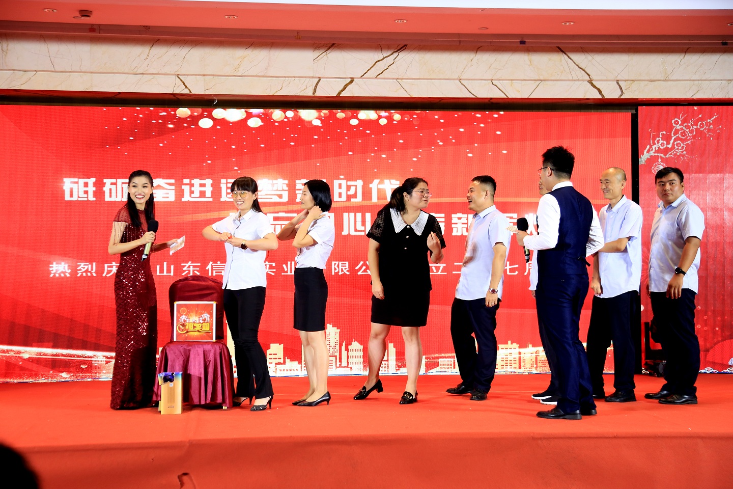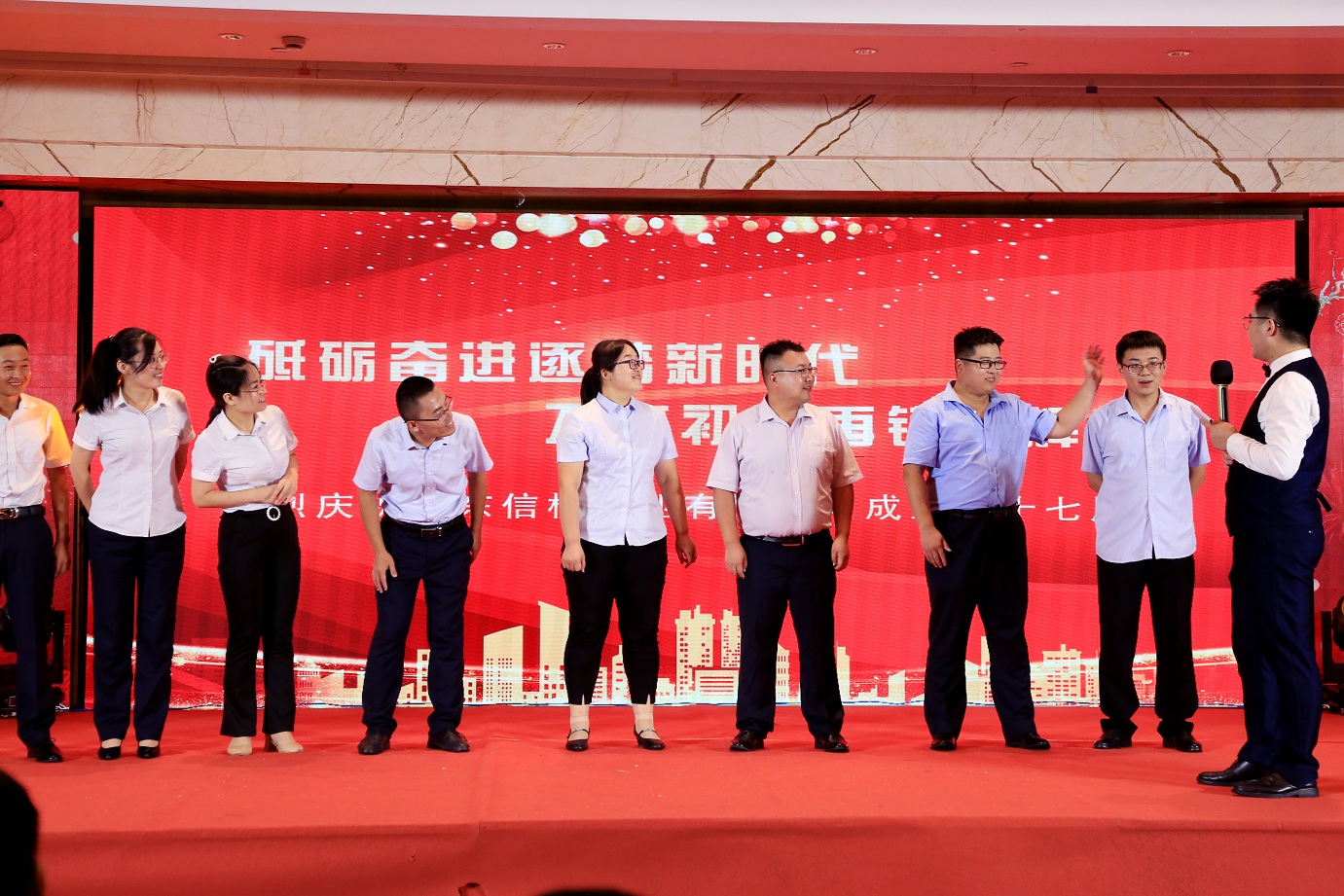 此次慶典晚宴參加人員除了信橋全體員工之外,還有部分老領(lǐng)導(dǎo)和老朋友,大家共同分享了信橋二十七周年的喜悅與精彩。八號(hào)上午,慶典開(kāi)始之前,演員們辛勤排練,燈光師、音響師共同配合,所有人為了晚會(huì)都在努力。下午4點(diǎn)58分,晚會(huì)正式開(kāi)始,全體員工與領(lǐng)導(dǎo)集體合影,信橋隊(duì)伍不斷在擴(kuò)大。今年的晚會(huì)添加新的互動(dòng)方式,采用了直播和紅包雨的新形式,是信橋周年慶典的一次新的嘗試。