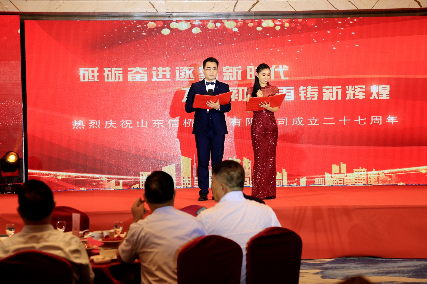 上半場(chǎng)結(jié)束,晚宴正式開(kāi)始,在領(lǐng)導(dǎo)的帶領(lǐng)下,大家共同舉杯,共同祝愿信橋二十七周歲快樂(lè)!