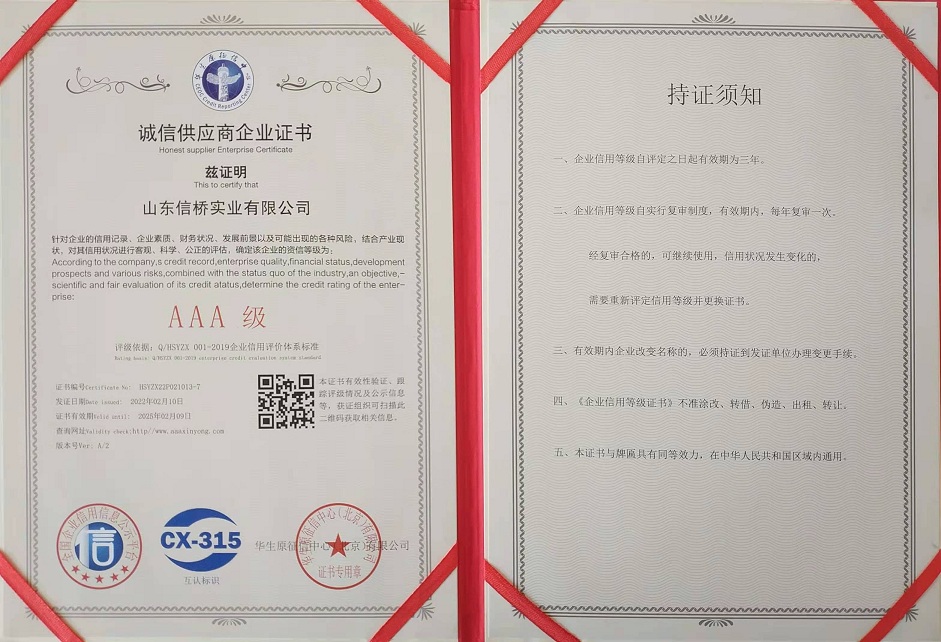 誠(chéng)信供應(yīng)商企業(yè)證書