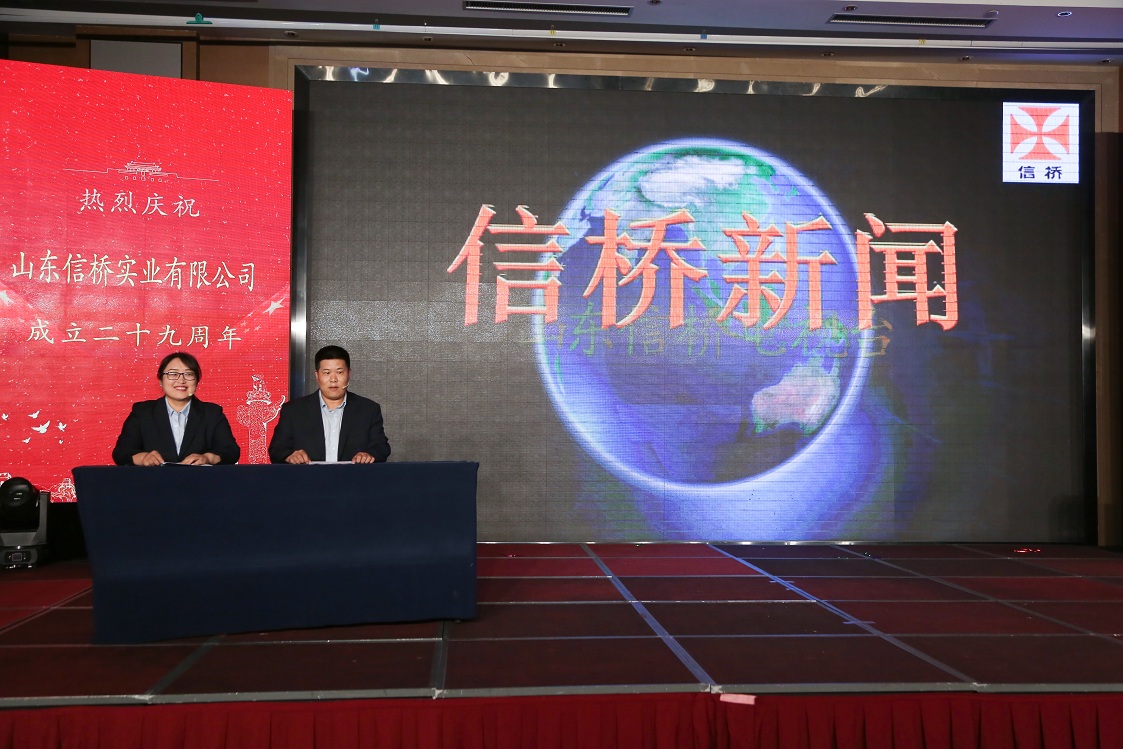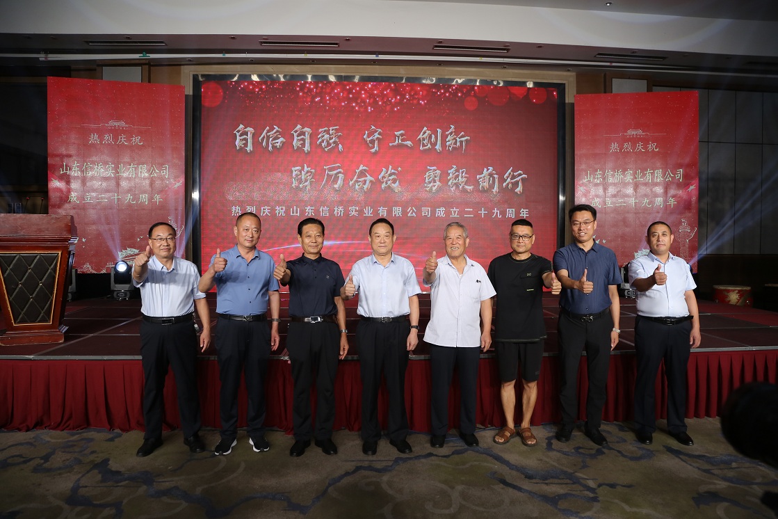 歲月如歌,風霜如畫,二十九年彈指一揮間,山東信橋?qū)崢I(yè)有限公司(以下簡稱山東信橋)迎來了二十九周歲的生日。二十九年來,信橋人在激烈的市場競爭中奮力拼搏、砥礪前行,接受了市場風風雨雨的洗禮,取得了累累碩果。為了慶祝這一特殊的日子,2023年8月8日,以“激流勇進,安定團結(jié)謀發(fā)展 披荊斬棘,開拓創(chuàng)新向未來”為主題的山東信橋二十九周年慶典活動在寶盛大酒店舉行。