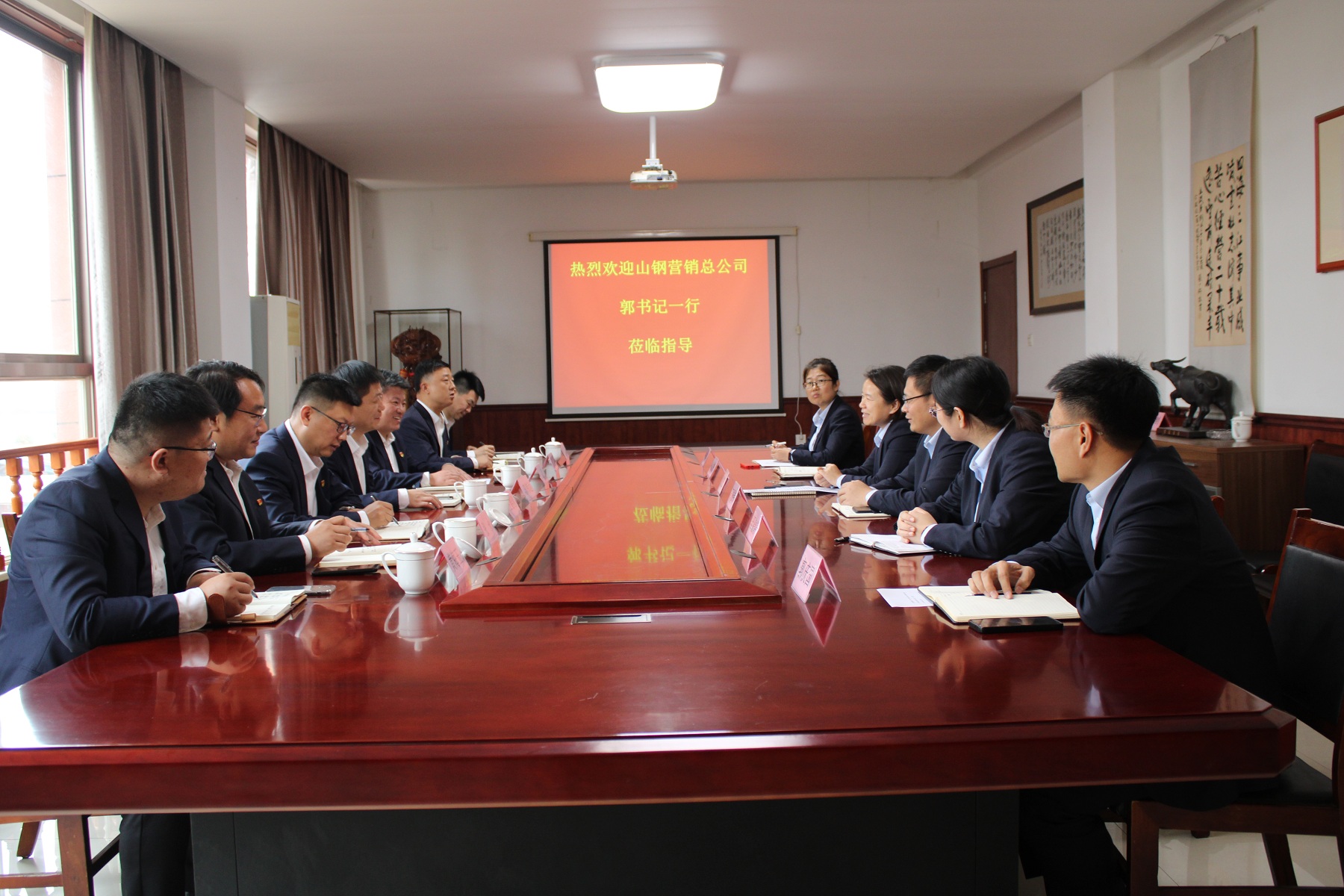 2023年11月3日,山鋼股份營銷總公司郭書記一行到信橋考察調(diào)研,信橋公司董事長徐立波、總經(jīng)理徐宏、副總及鋼廠聯(lián)絡(luò)員熱情接待。